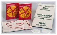 Program Content 1. The Information Wheel: All issues, problems, and conflicts share something in common - an informational structure. The Information Wheel captures the five different kinds of information at work in any situation. The Wheel is the foundation for the communication skills taught in the program. Members learn six talking skills for discussing issues more clearly, directly, and completely. 2. The Listening Cycle: Co-workers often press for agreement, solutions, or action before they understand the problem fully. This is particularly true in fast-paced and conflicted situations. Five listening skills help group members go efficiently to the core of an issue. The skills reduce stress, build relationship, and create accurate understanding. Members also learn the Listening Cycle, a strategy to gain and ensure quality information. 3. Mapping Issues: Group members identify and discuss their typical patterns for dealing with issues. Then they learn how to Map Issues - a collaborative team process - for making decisions, solving problems, or resolving conflicts. Mapping Issues combines the six talking and five listening skills. Members review their current group issues and choose one important issue to resolve as they learn the process. 4. Styles of Communication: How members talk and listen to each other determines the quality of information exchanged and reflects the norms operating within the group for dealing with issues. This framework expands team awareness about the styles they use and the positive and negative impacts of each style on their work. Groups also develop more explicit and effective norms for negotiating issues. Program Uses